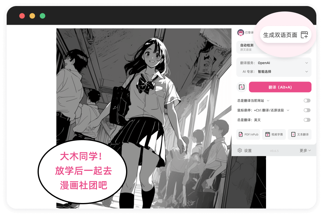 I recently explored creating bilingual e-books in Chinese and English using "Immersive Translate" and found this app to be incredibly powerful. It spans all systems and platforms, allowing you to use it on any device—PC, mobile—with virtually no difference in experience across platforms.