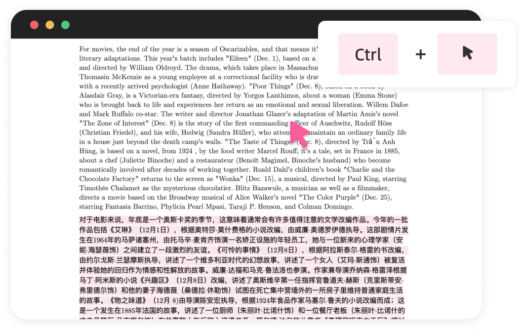 Одним нажатием кнопки включите двуязычное чтение, чтобы повысить эффективность получения информации.
